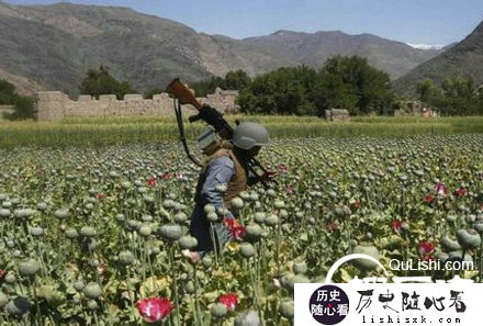2014年4月29日,库纳尔省,一名阿富汗警察正在一次禁毒行动中摧毁罂粟田。阿富汗有望成为一个毒品之国。其鸦片的产量达到了历史的最高水平,由于美国仅撤出了很少的军队,目前,塔利班武装仍然控制着整个国家。