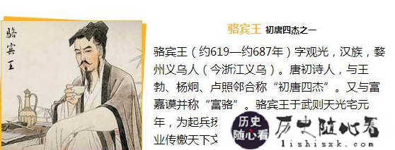 作为初唐四杰之一的骆宾王,也有着和众多文人相同的命运,怀才不遇,郁郁寡欢。他最著名的一篇文字就是《讨檄文》,文笔犀利,构思巧妙,逻辑清晰,就连看了后,在气愤之余也不得不夸奖其有宰相之才。