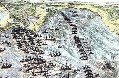 随着拜占庭帝国的灭亡,土耳其人席卷了欧洲东部,他们通过在北非和中东的基地,加强了对地中海的控制。基督教国家再也没有象十字军东征期间那样齐心协力来对付奥斯曼土耳其的威胁。然而,1570年土耳其人对塞浦路斯的侵犯,终于形成了一个高压紧迫的气氛,使地中海地区的基督教力量拧成一股绳。在罗马教皇庇护五世倡导下创立了一个反穆斯林神圣同盟。葡萄牙和神圣罗马帝国都不愿为该同盟效力,但是西班牙和意大利城邦却响应教皇的号召,并派遣自己的舰队在墨西拿海峡集中。因为很清楚,他们得在基督教陆军在塞浦路斯登陆前,在海上击败土耳其人。
